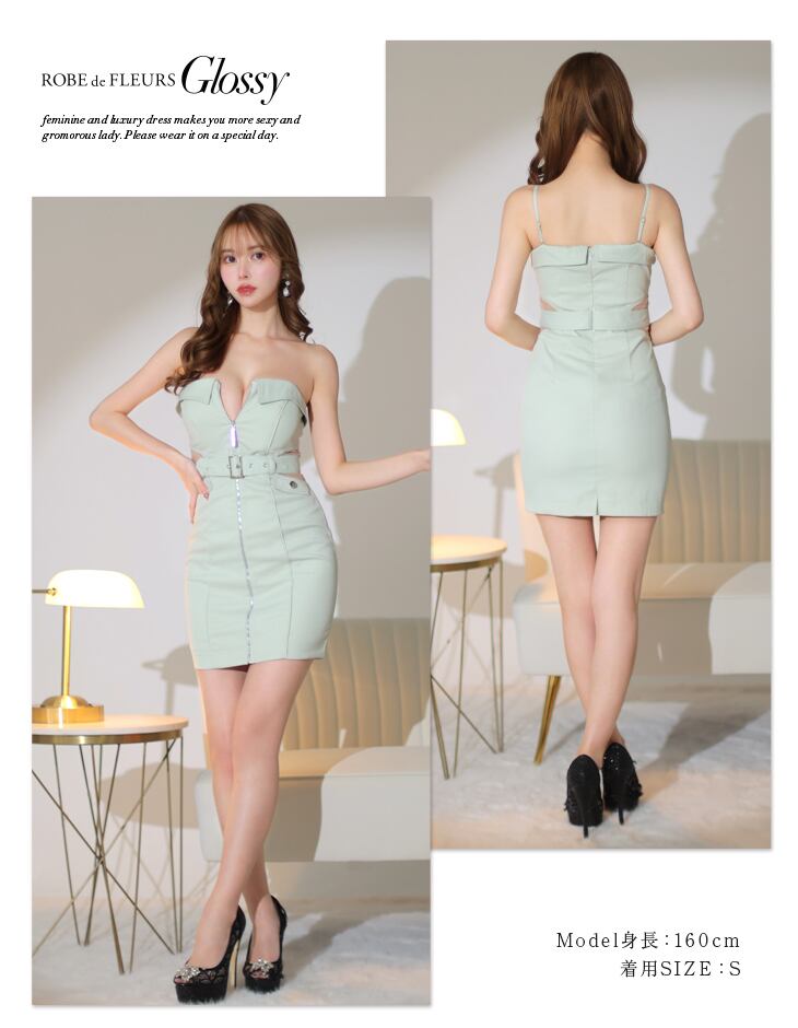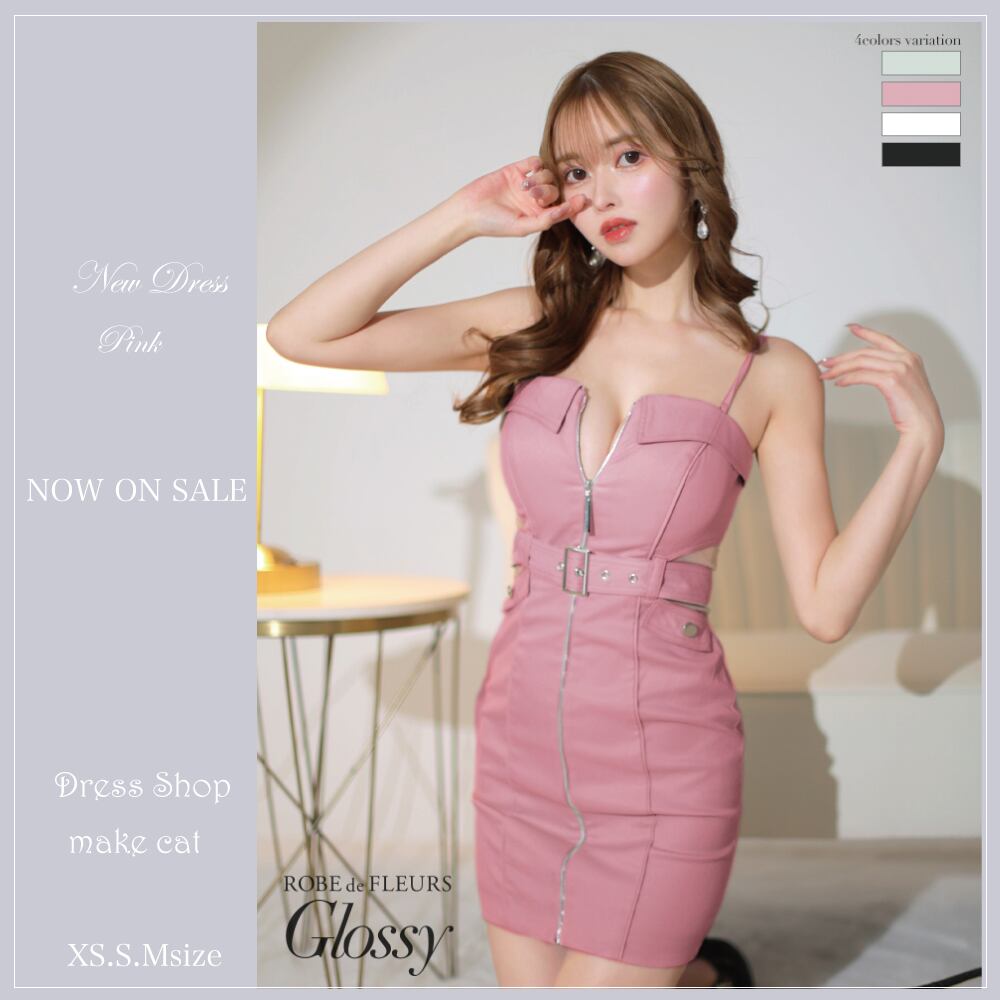 【ROBE de FLEURS Glossy】【送料無料】【即納】【当店特別価格】【税込】フロントジッパーx キャミ キャバドレス(GL3163)