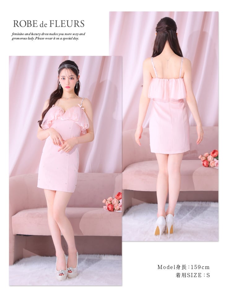 【ROBE de FLEURS 】【送料無料】【即納】【当店特別価格】【税込】バストフリル/ ラブリー/ ミニリボン/ キャミソール/ タイト/ ミニドレス/ キャバドレス 3709 [fm3709]