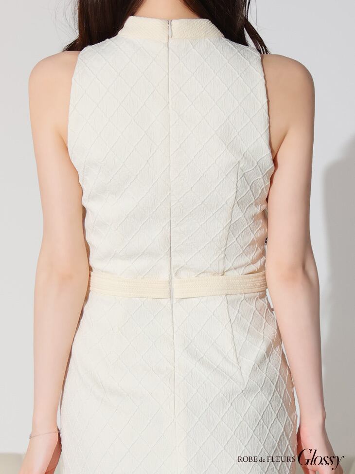 【ROBE de FLEURS Glossy】【送料無料】【即納】【当店特別価格】【税込】フロントジッパー×ビジューリブノースリーブミニキャバドレス 3554 (GL3554)