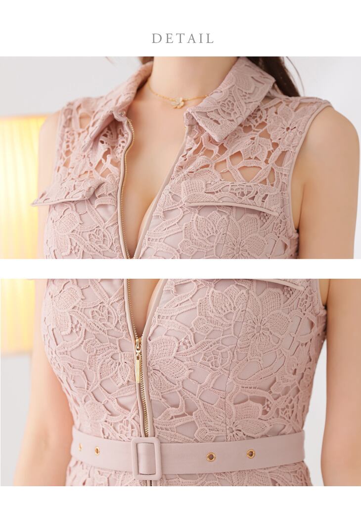 【DEA by ROBE de FLEURS 】【即納】【当店特別価格】【税込】ナチュラルレースバストジップベルトプリーツミニキャバドレス 3546 (DE3546)