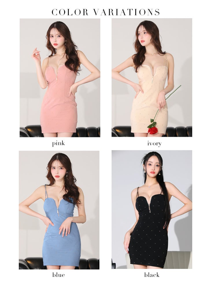 【ROBE de FLEURS Glossy】【送料無料】【即納】【当店特別価格】【税込】スエードスタッズバストジップタイトミニキャバドレス 3558 (GL3558)