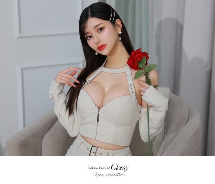 【ROBE de FLEURS Glossy】【即納】【当店特別価格】【税込】2way ホルターリボンネックオフショルダーセットアップミニキャバドレス(GL3171)
