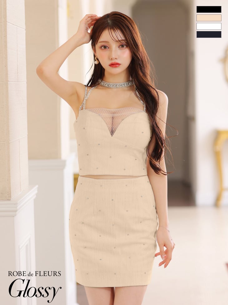 【ROBE de FLEURS Glossy】【送料無料】【即納】【当店特別価格】【税込】ビジューネックハートカットコズミックミニキャバドレス 3562 (GL3562)