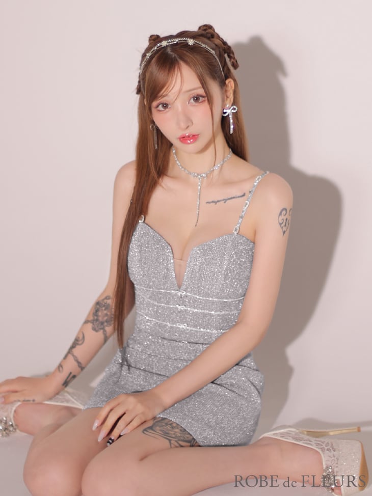 【ROBE de FLEURS 】【即納】【当店特別価格】【税込】スパークルラメニットミニリボンタイトミニキャバドレス 3271 (fm3271)