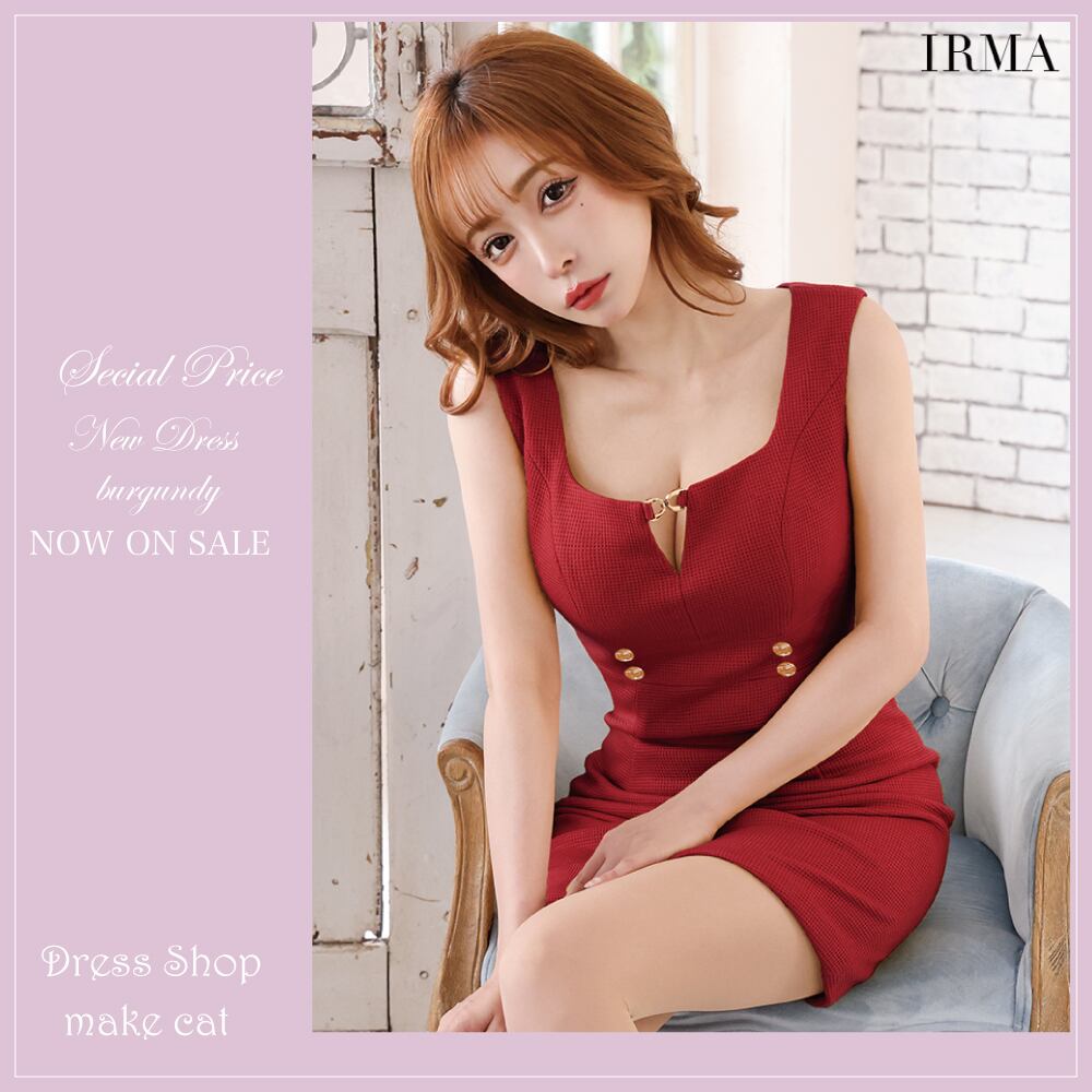 【IRMA JEAN MACLEAN】【即納】【当店特別価格】【税込】シンプル/ ワンカラー/ ノースリーブ/ スクエアネック/ ストレッチ/ タイト/ ミニドレス/ キャバドレス [35876]